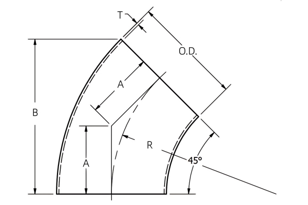 สแตนเลสสตีล 45 °รัศมีท่อโค้งงอไม่มีความยาวขาบนพวกเขาและเหมาะสำหรับช่องว่างที่เข้มงวดมากขึ้น พวกเขาสามารถใช้กันอย่างแพร่หลายในระบบท่อต่างๆรวมถึงอุตสาหกรรมเคมีปิโตรเลียมแปรรูปอาหารยาการบำบัดน้ำและสาขาอื่น ๆ