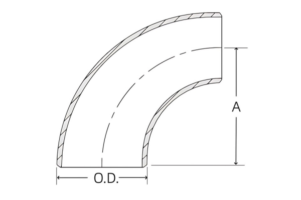 | ขนาดท่อเล็กน้อย | O.D. | ความหนาของผนัง | ยาว | สั้น รัศมี | |||