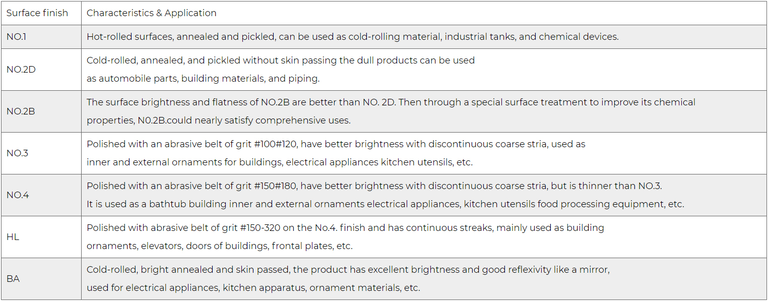 ลักษณะและการใช้งานของพื้นผิวสแตนเลสเสร็จสิ้น